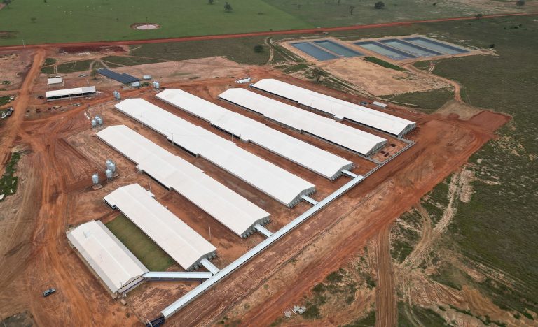 Nesta obra, em parceria com a JBS, em Jateí/MS, executamos as estruturas pré-moldadas para chiqueiros de núcleo UPD 3000.